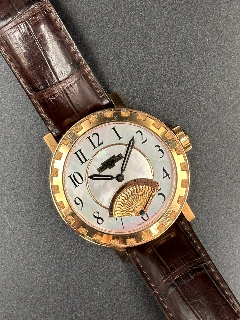 Dial: White Mother-of-Pearl with Arabic Numerals & an “Oriental Fan” Sub-dial (retrograde seconds)